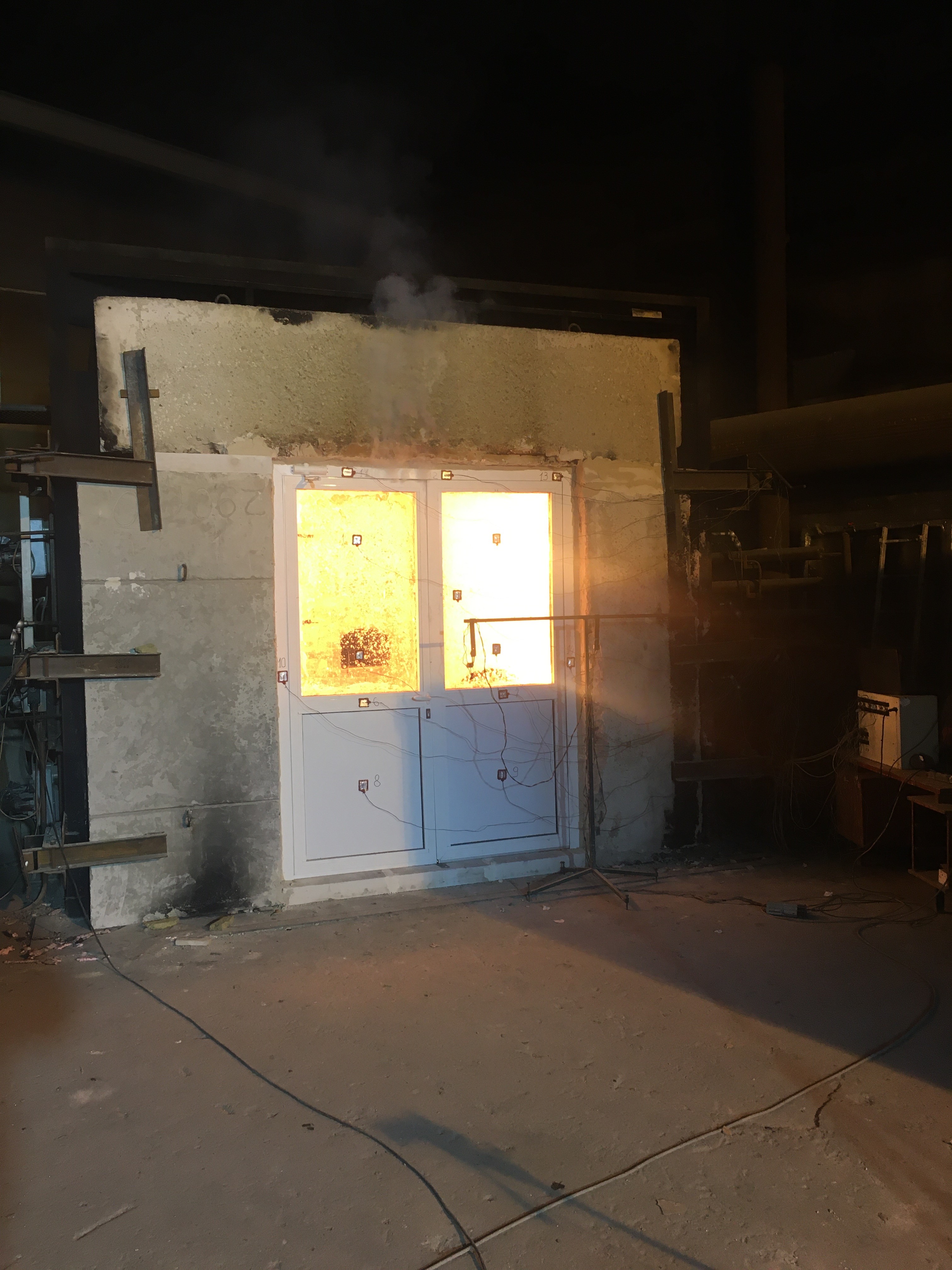 ООО "ДомГласс" провел очередные испытания отжига противопожарной двери с площадью остекления более 25%, с классом стойкости EIW60. За основу был выбран профиль системы DW4068 компании Alusit. Заполнением конструкции послужил засыпной материал компании PROFFILING. Стекло, входящее в конструкцию изготовлено на нашем производстве ООО "ДомГласс", толщиной 26 мм и наполнением композита Рефра.